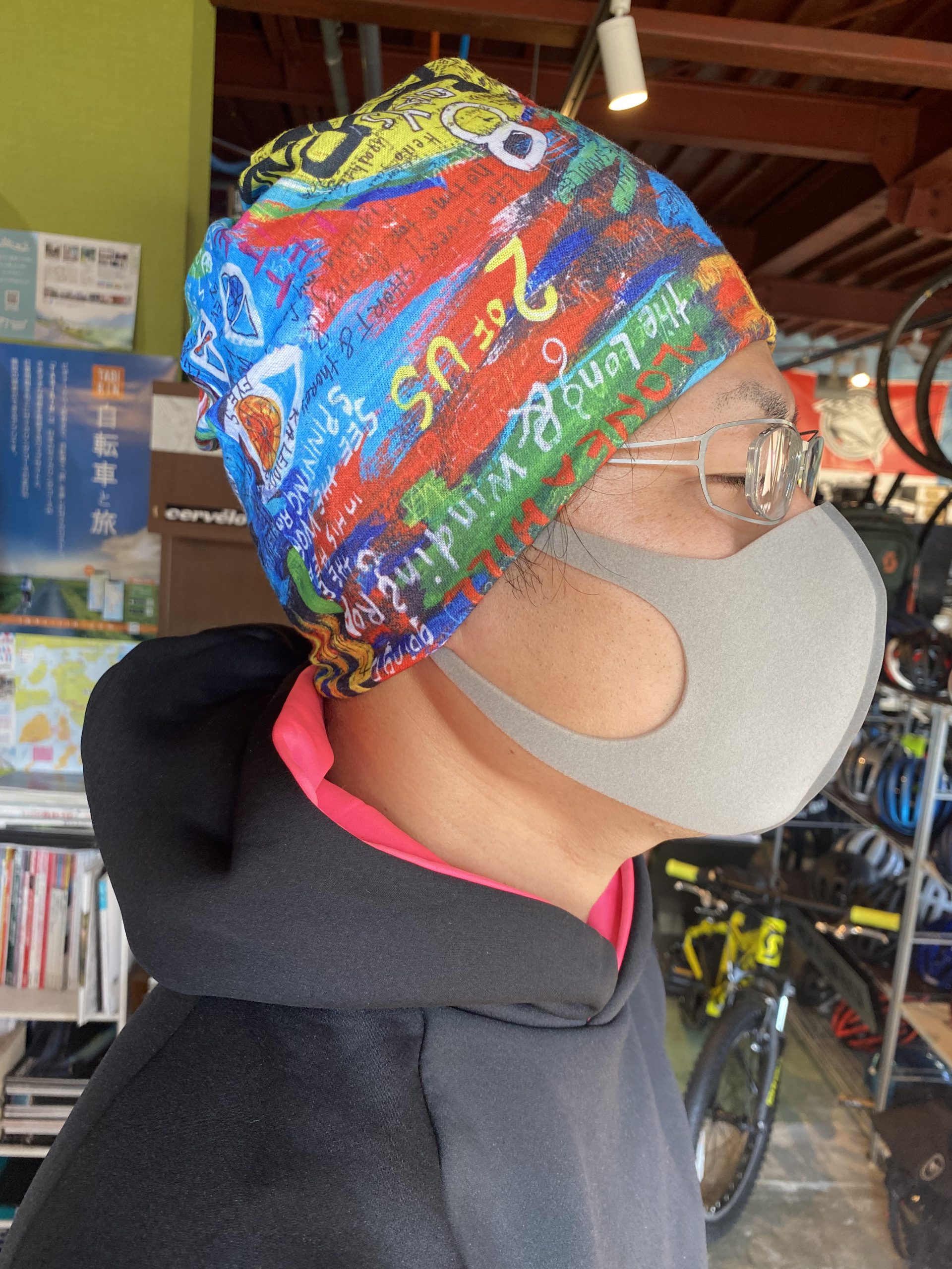 首もとのクシュクシュしてるところを伸ばしてマスク代わりに使うことも出来ます!