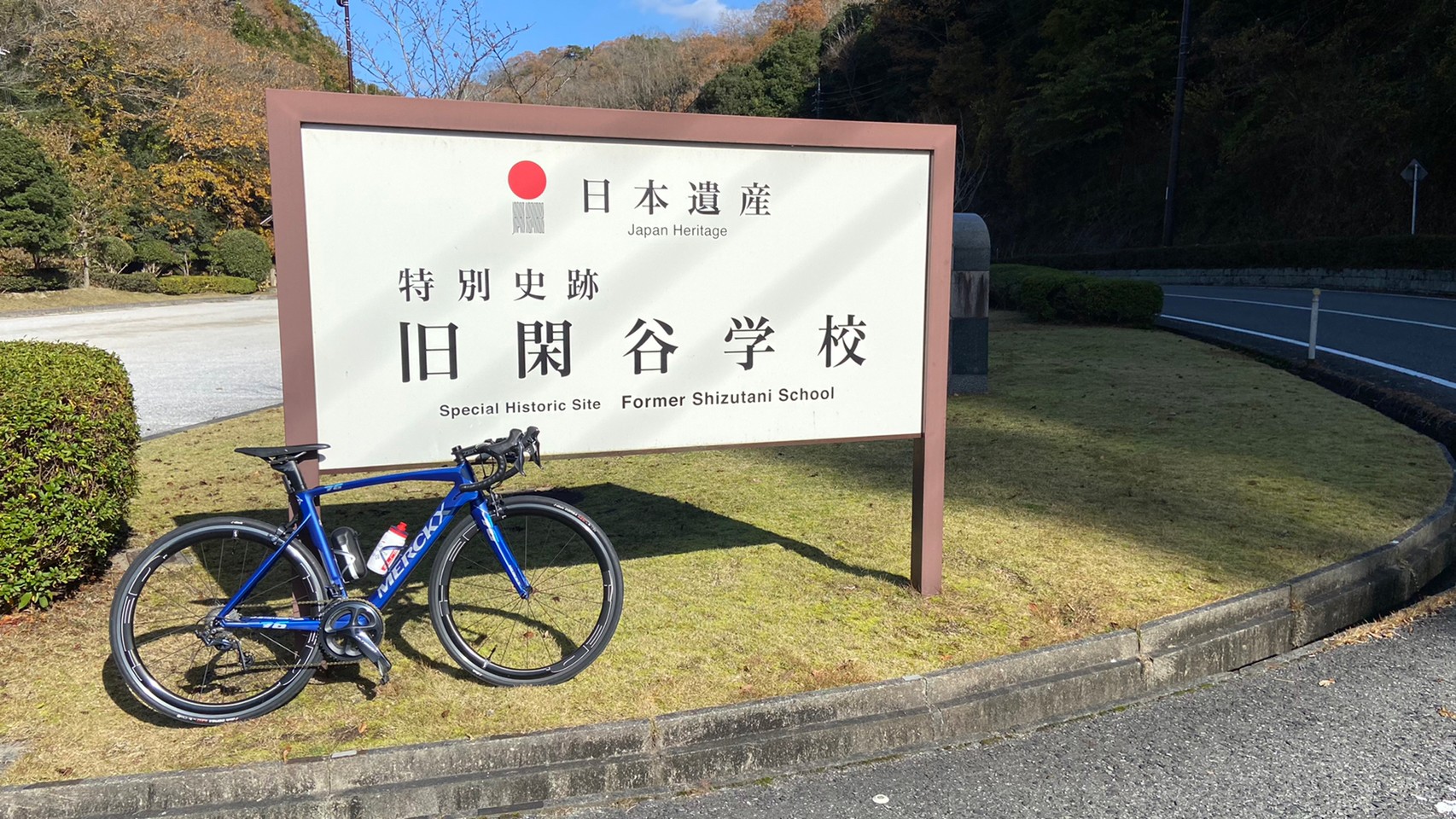 旧閑谷学校前の上り坂を写真のために先回りで爆走したら死にかけましたが、無事に旧閑谷学校に到着!