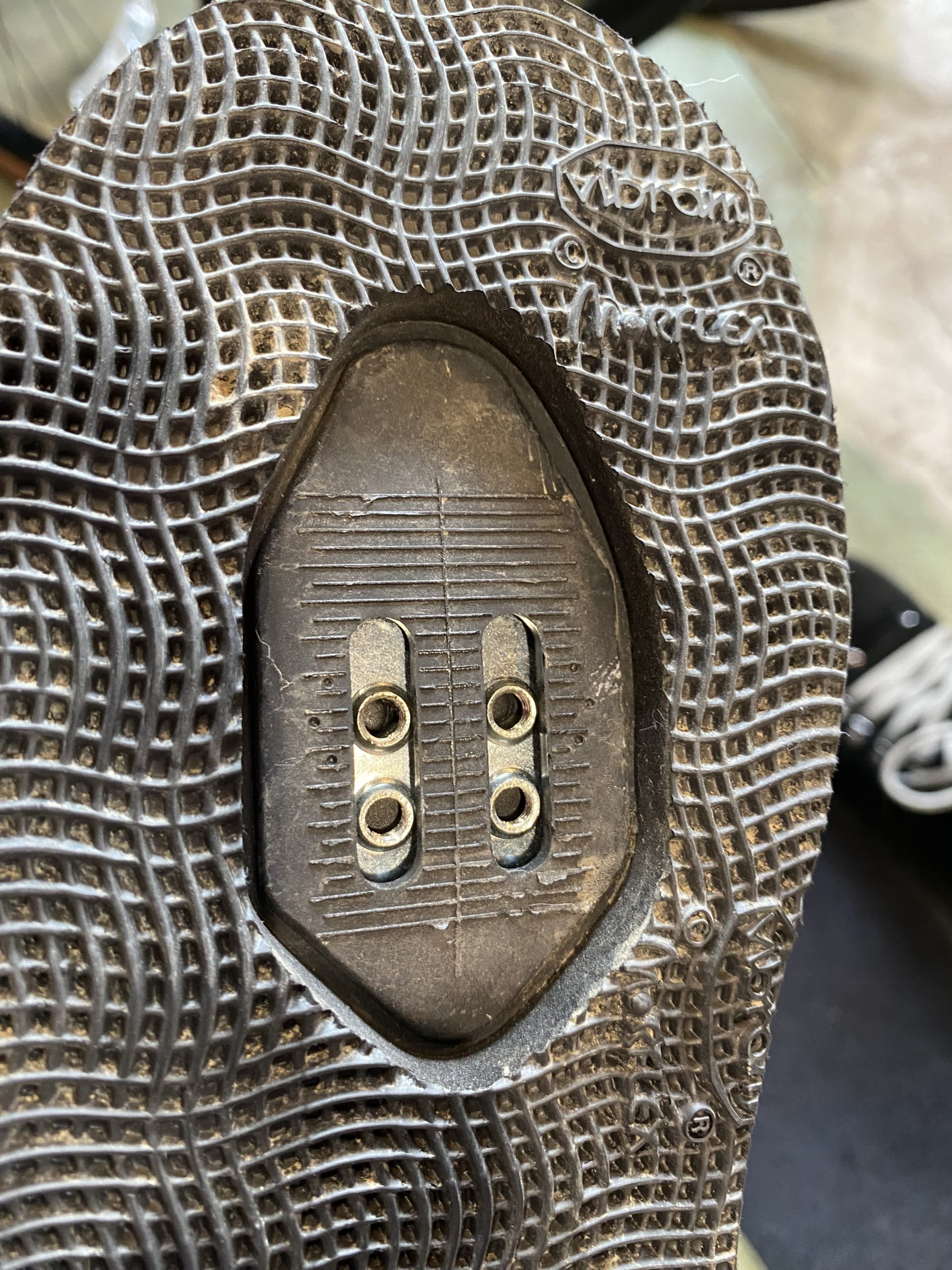 ここにクリートを付けるとロードバイク用は靴裏から出っ張った状態になります。